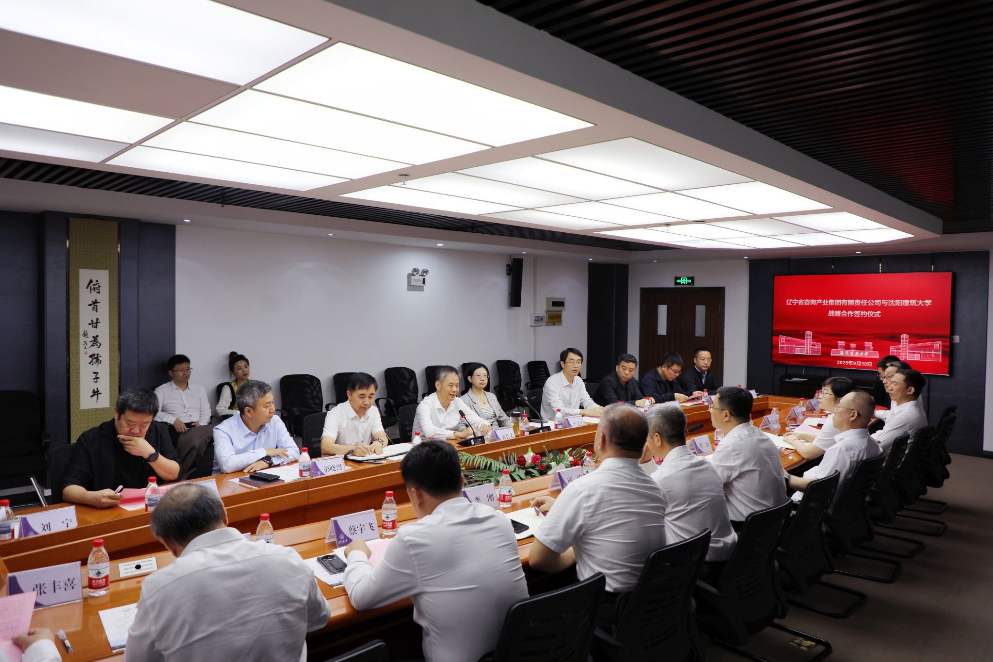 辽宁省咨询产业集团有限责任公司办公室、运营管理部、科技创新与信息化部,辽宁省国际工程咨询中心,辽宁省城乡建设规划设计院有限责任公司,辽宁省建筑设计研究院有限责任公司,辽宁省市政工程设计研究院有限责任公司,辽宁省城乡地理信息科技有限公司,我校党政办公室、科学技术研究院、社会服务办公室、建筑与规划学院、市政与环境工程学院、管理学院,沈阳建筑大学设计集团有限公司相关负责人出席座谈会和签约仪式。