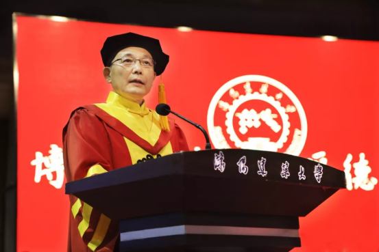 校学位评定委员会主席、校长石铁矛为毕业生代表颁发了学位证书。他代表学校向奋力拼搏完成学业的本科生、研究生和留学生同学表示热烈祝贺,向一直以来培育同学们的老师和关心同学们的家长表示诚挚的感谢!