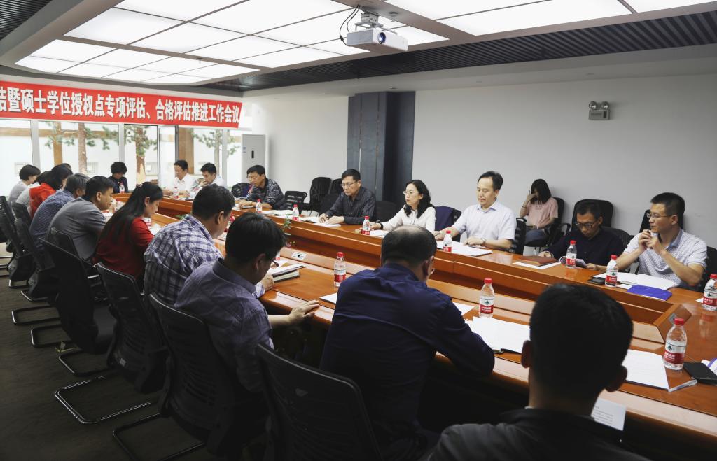 会上,研究生院全面分析了国务院学位委员会、教育部学位授权点合格评估政策,深入总结了5个博士学位授权点专项评估及下一步工作重点,详细部署了2018年3个硕士学位授权点专项评估工作安排、23个学位授权点合格评估工作进展及评估总结报告上报等工作。建筑学院、管理学院、外国语学院汇报了学位授权点专项评估自查分析情况,环境学院、信息学院、材料学院代表合格评估单位,汇报了学位授权点合格评估工作推进及针对专家意见进行的整改提升情况。学校领导就学位授权点合格评估工作与各学院和相关职能部门进行了深入交流和讨论,对各单位提出的问题进行了统一协调,进一步明确了工作方向。