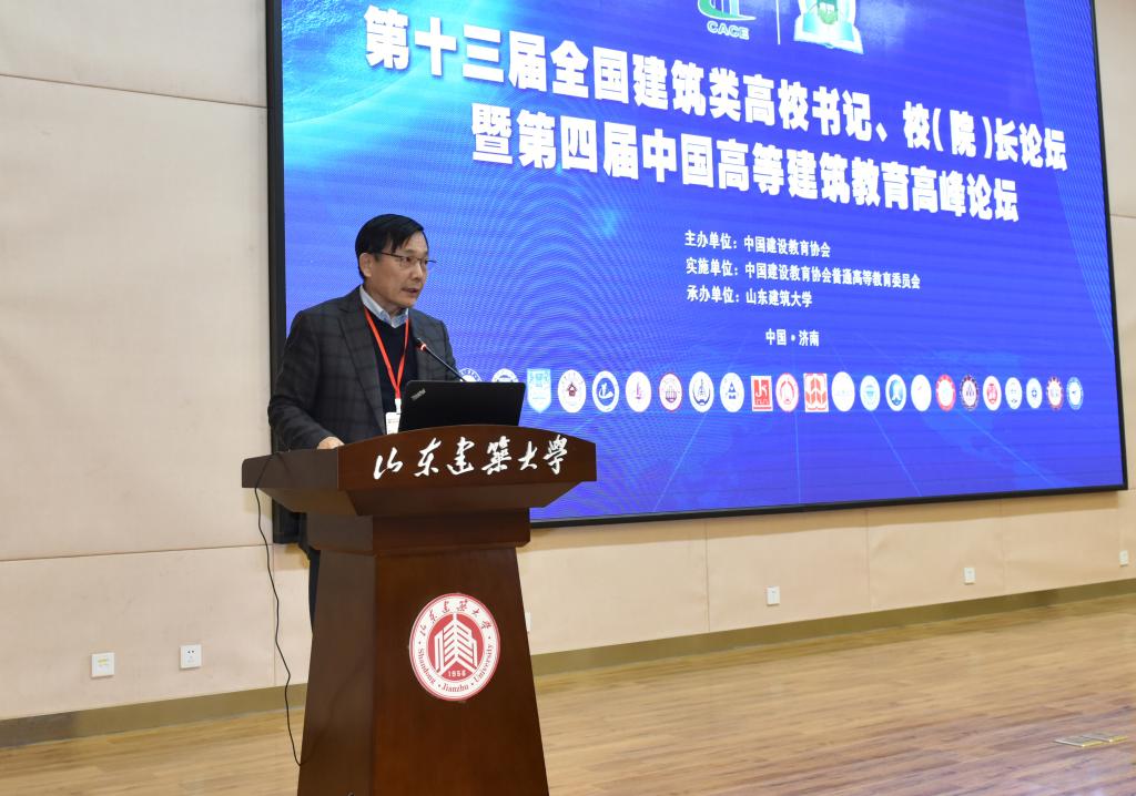 11月3日,第十三届全国建筑类高校书记、校(院)长论坛在山东济南举行,全国10余所建筑类高校的书记、校(院)长齐聚一堂,围绕“全面贯彻落实党的十九大精神,加快推进建筑类高校‘双一流’建设”的主题,研讨交流,共话建筑类高校教育发展未来。我校校长石铁矛出席了论坛并做了主题报告,党政办公室、教务处、发展规划处等部门代表参加了论坛。