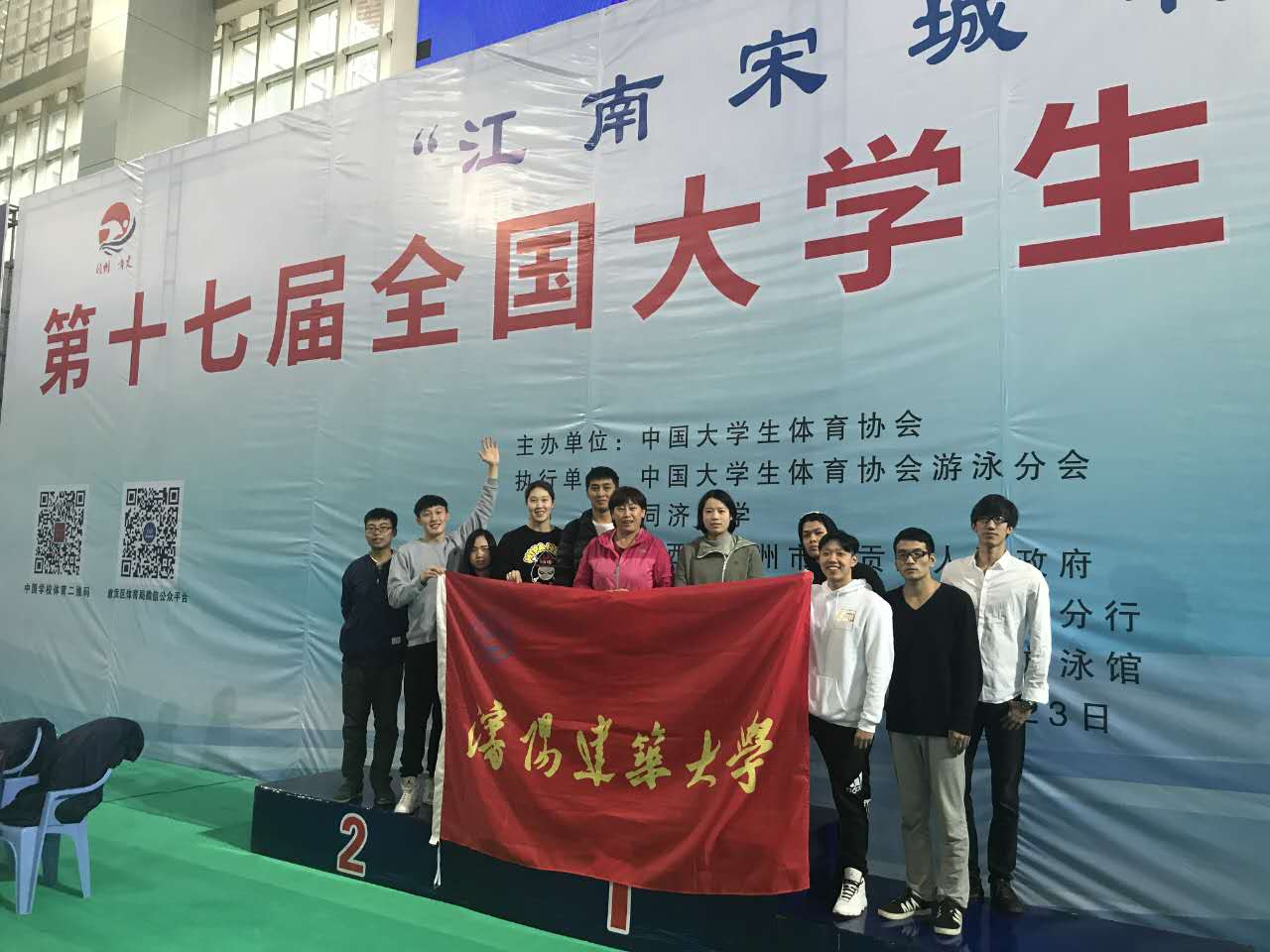 11月19日,“江南宋城杯”第十七届全国大学生游泳锦标赛在江西省赣州市章贡区开幕,本届赛事由中国大学生体育协会主办。北京大学、清华大学和沈阳建筑大学等81所高校参赛,奥运冠军叶诗文等共近1000名运动员参加比赛。我校派出由体育部指导教师潘静伟和纪磊带队,共9名队员组成的沈阳建筑大学游泳队参赛。