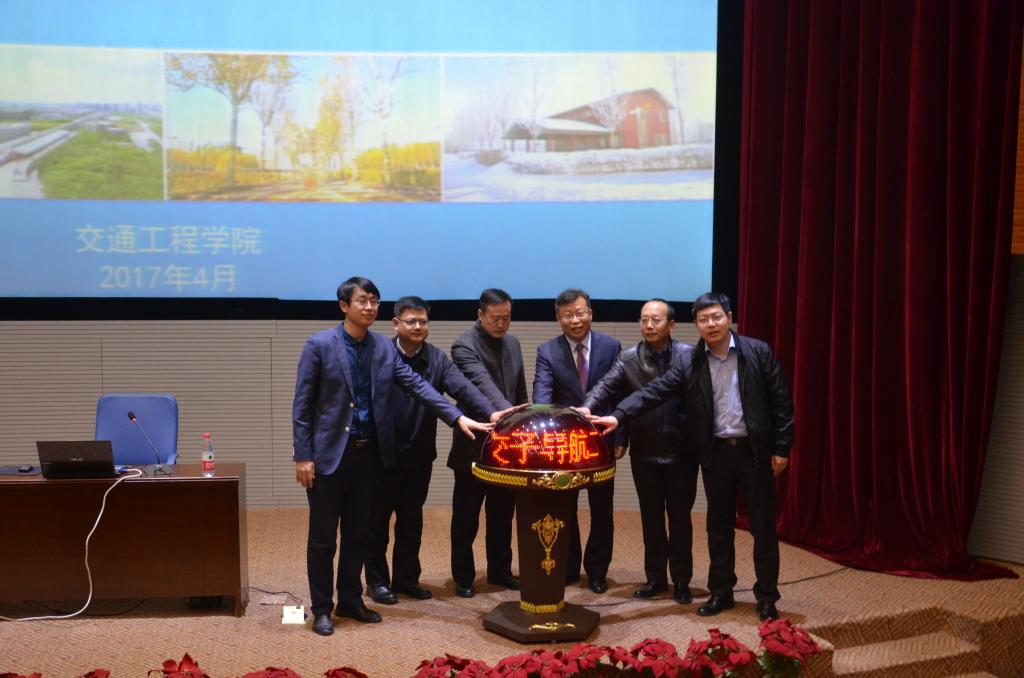 会见前,交通工程学院在新宁科学会堂举办了“交子导航”启动仪式暨第一期“交子讲坛”活动,任鸿鹏校友做了第一期“交子讲坛”,他以“坚持梦想、坚持学习”为主题与学生分享人生经历,鼓励学生一定要珍惜校园时光,养成良好的学习习惯,为未来的工作打下良好的专业基础。
