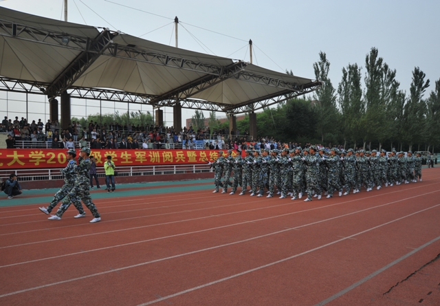 校长王军检阅了2013级全体参训学生方队。参训学生方队进行了阅兵式、分列式、队列和擒敌拳训练汇报表演,展现了半个月刻苦训练的优秀成果以及当代大学生昂扬向上的精神面貌。