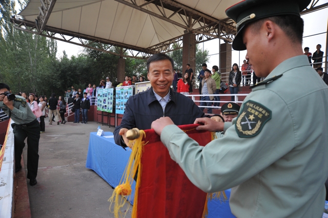 党委书记吴玉厚向承训部队赠送了“教官风采尽展沈阳校园,学生英姿描绘未来建大”的锦旗,表达了我校对承训部队崇高的敬意和深深的感谢。