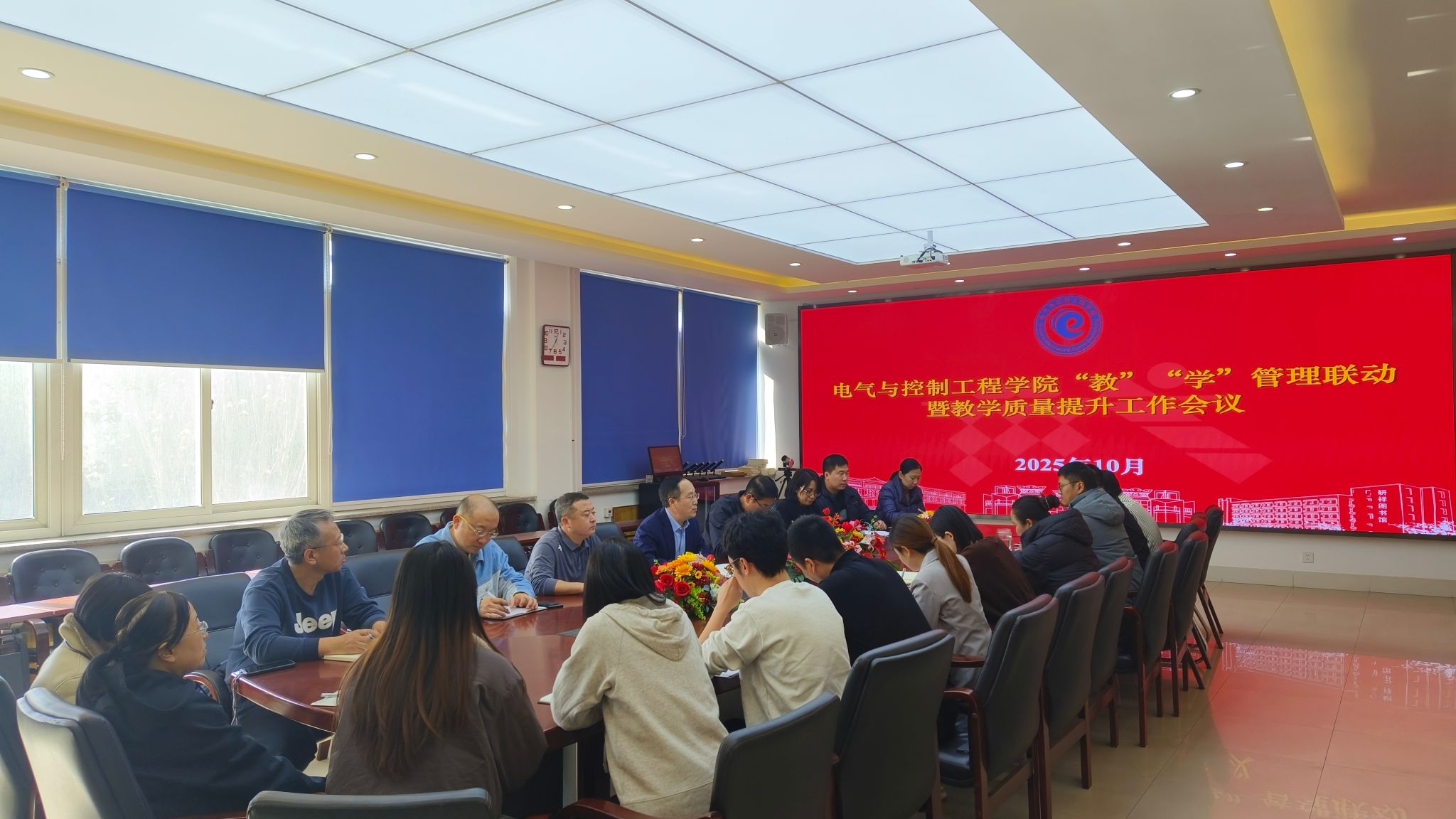 为深入贯彻落实学校党委提升教学质量的工作要求,进一步加强教学事务和学生事务的联动管理,统筹构建高质量人才培养体系,近日,电气与控制工程学院召开“教”“学”管理联动暨教学质量提升工作会议。学院班子成员、各系(中心)主任及党政办、教务办、学办全体人员参加会议。