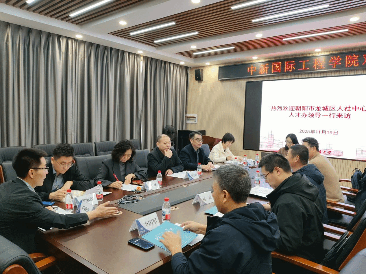 为深化校地协同合作,搭建人才培养、创新创业与就业服务的共赢平台,11月19日,朝阳市龙城区人社中心、区委人才办一行来访我校,双方校地合作座谈会在丙2-503会议室召开。朝阳市龙城区人社中心专职副书记刘佳辉、区委人才办副主任杭磊、龙城创业创新孵化基地运营方总经理常刚,我校党委学生工作部、中新国际工程学院、工程训练与创新创业学院相关负责人出席座谈会。双方围绕就业创业合作、人才引育留用等核心议题深入交流,达成多项共识并签署系列合作协议。