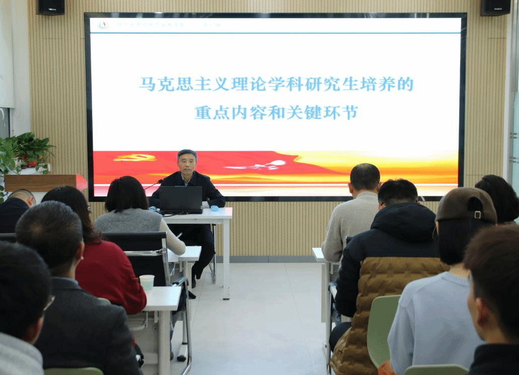 培训中,房广顺以“马克思主义理论学科研究生培养的重点内容和关键环节”为题,围绕马克思主义理论学科研究生培养的重点内容与关键环节进行了系统阐述。他首先从四个“明确”入手,即明确研究生学习任务、明确各学年学期学习安排、明确专业性质与培养要求、明确未来发展目标,详细讲述了导师应如何科学指导研究生进行学习规划。针对学术论文写作这一核心环节,房广顺提出“早准备、深研究、精写作、高产出”的指导方针。他结合自身丰富的经验,对学位论文的选题策略、内容设计、写作流程与工作程序进行了生动而深入地剖析。最后,房广顺特别强调了学术规范与科学道德的重要性,并勉励全体师生要志存高远、心系家国,努力成为马克思主义理论的坚定学习者、深入研究者、忠诚信仰者和模范践行者。