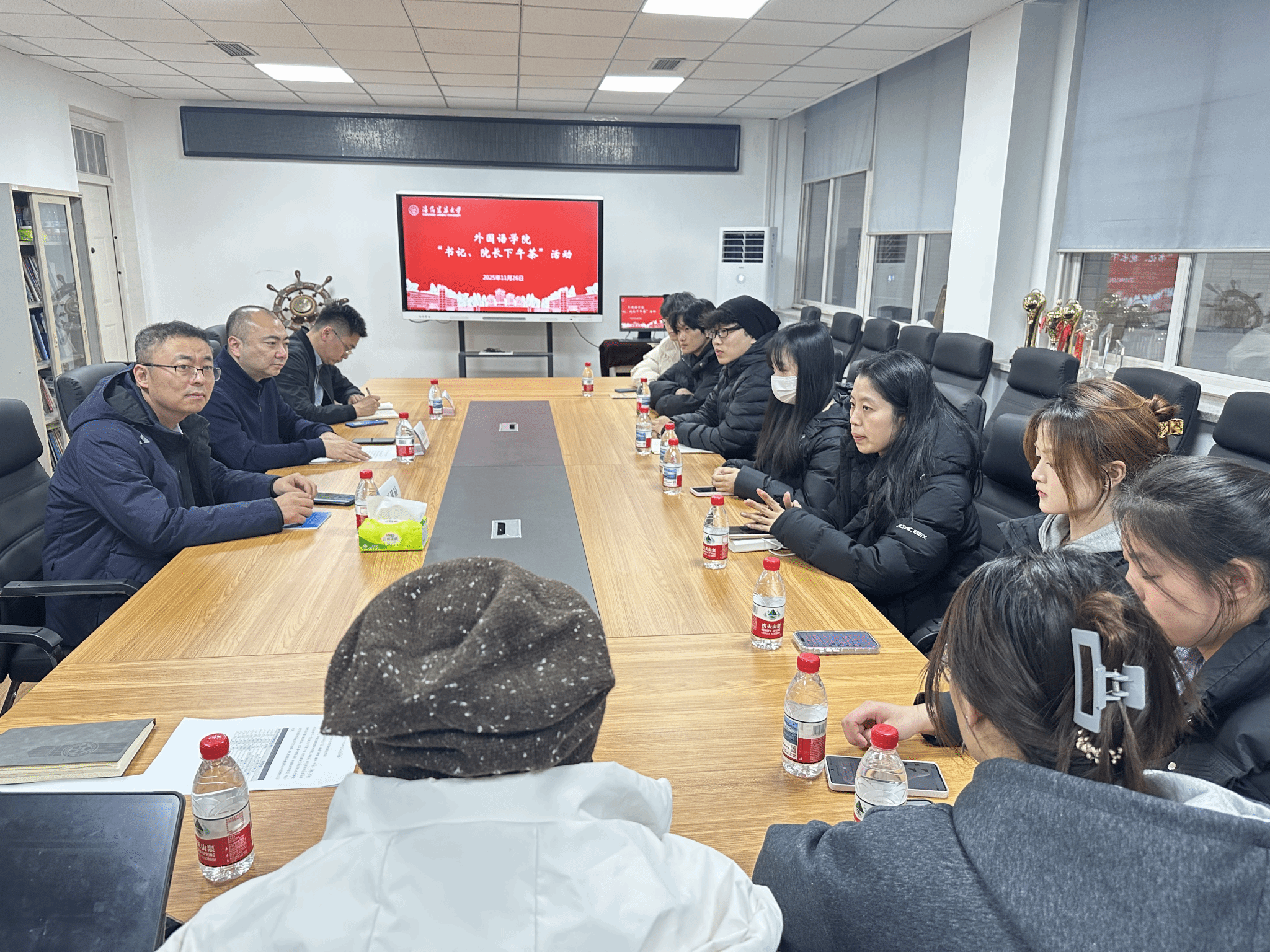为聆听学生心声,精准对接学生成长需求,11月26日,外国语学院在E2-203会议室举办“书记、院长下午茶”活动。外国语学院党总支书记王诗白出席活动,学校发展规划与学科建设处副处长王延臣、中新国际工程学院副院长尹浙霖应邀参加活动,与研究生代表围坐一堂,围绕学术能力提升、成长规划困惑等话题展开深度交流。