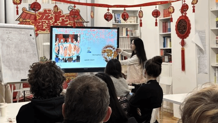 罗马尼亚时间12月17日,我校布拉索夫特来西瓦尼亚大学孔子学院举办了“解锁‘福’文化”主题体验活动。孔子学院外方院长科琳娜·西尔维娅·米库(Corina Silvia Micu)、中方院长王冰及五名中文教师与当地学子齐聚一堂,共话汉字魅力。活动旨在将中华传统文化中蕴含的“福气”与“好运”跨越山海,传递给每名学生。