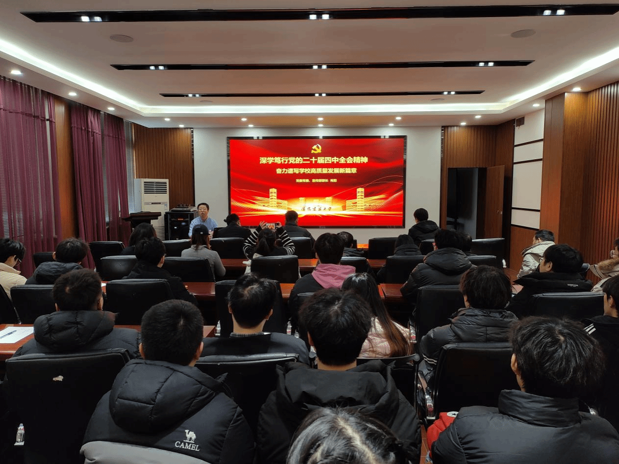 为深入学习贯彻党的二十届四中全会精神,切实把学院师生党员的思想和行动统一到党中央决策部署上来,12月25日,市政与环境工程学院党委特邀学校党委常委、宣传部部长肖阳开展专题理论宣讲。宣讲会由学院党委书记寇福生主持,学院60余名师生党员代表参加了活动。