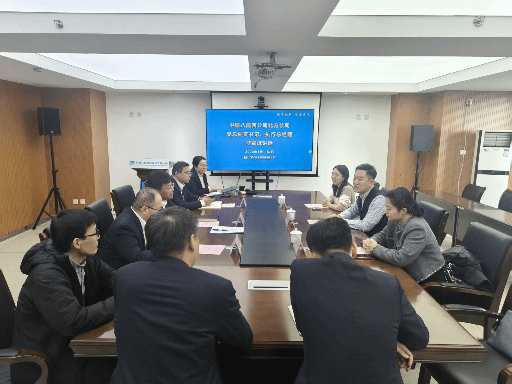 走访期间,学院领导一行受到企业的热情欢迎。在中建八局四公司北方公司,企业相关负责人详细介绍了企业发展历程、当前主营业务领域、近年来在重大工程建设、科技创新与人才培养方面等内容。学院领导详细介绍了学院近年来的发展概况、专业特色及2026届毕业生情况,并重点推介了学校春季招聘会的安排,热情邀请企业届时来校选聘英才,搭建毕业生与优质企业的直接对接平台。随后,双方围绕党建联建、产学研合作模式创新、实习实践基地共建等内容进行了深入交流与探讨。