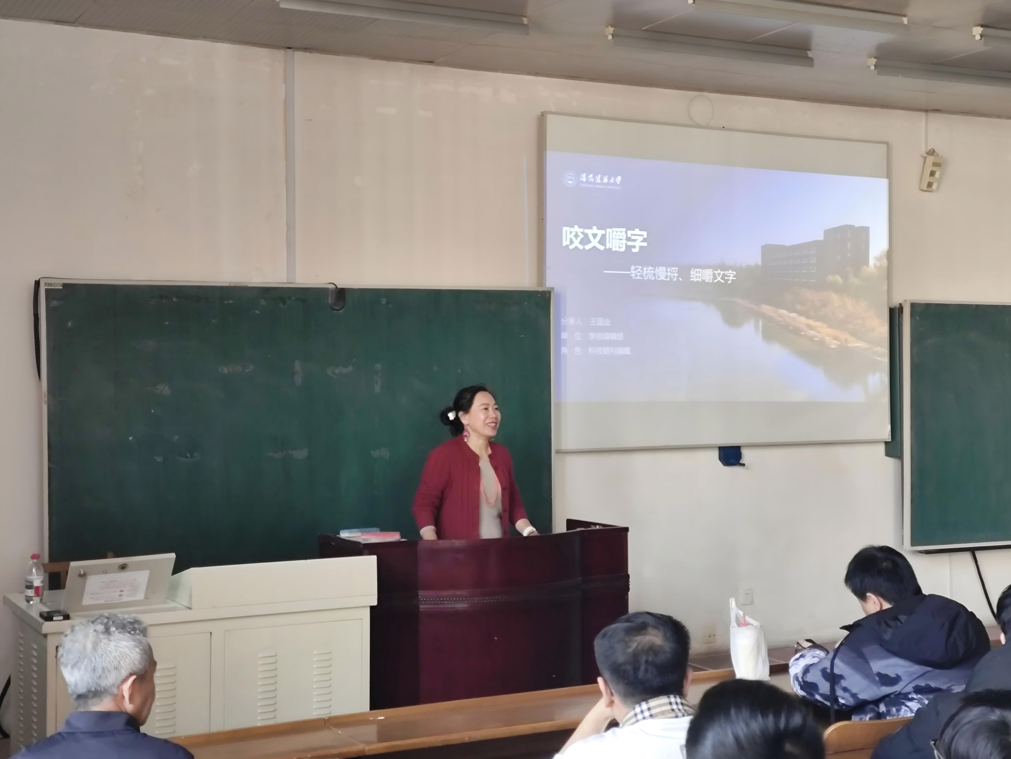 为落实以党建引领推动教育高质量发展,切实提升学术论文质量,解决学生在论文写作过程中的实际困难,3月24日,学报编辑部党支部围绕“不忘初心、牢记使命、坚守阵地、服务师生”主题,在B2-301教室为学校师生举办“咬文嚼字——轻梳慢捋、细嚼文字”专题讲座,学报编辑部主任孙丽主持讲座。