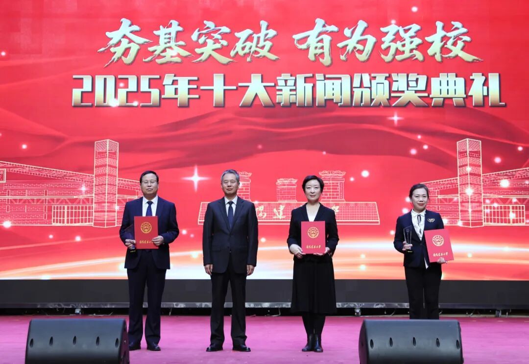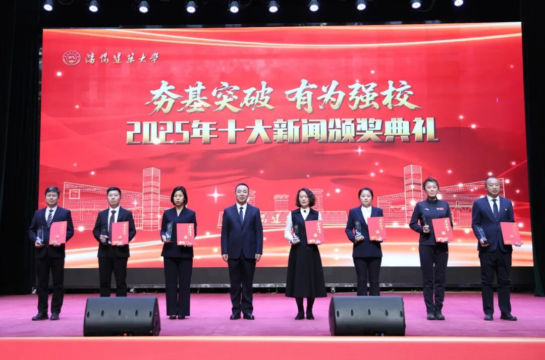 校长赵辉在典礼上讲话。他代表学校向所有获奖的集体和个人表示热烈祝贺,向过去一年辛勤工作、无私奉献的全体教职员工和刻苦学习、奋发向上的全体学生致以诚挚的慰问。他指出,十大新闻的年度评选与表彰,既是对过往成就的系统梳理与崇高致敬,更是全校上下凝聚共识、汇集动能、校准航向的关键契机。他强调,2026年是“十五五”开局之年,也是学校迈向更高发展目标的启航之年。在去年改革攻坚的基础上,学校党委行政决定将今年和明年定为“核心竞争力筑基突破年”,锚定学科建设、人才培养、科研创新等方面精准发力,以国家科学基金突破、博士点增列、招生质量大幅提升等重点指标的阶段性突破为学校高质量发展筑牢根基。站在新起点,他向全校师生提出三点希望:一是永葆“闯”的勇气,在服务国家战略中敢于领题、率先破局。二是激发“创”的智慧,在深化内涵发展中追求卓越、铸就品牌。三是锤炼“干”的作风,在建设幸福家园中凝心聚力、务实笃行。他希望,全体建大人以舍我其谁的担当、只争朝夕的劲头,将学校“一二三四五”工作思路转化为生动实践,在学校创新发展的道路上跑出加速度、干出好成绩,共同绘就建大高质量发展的壮丽画卷,书写出无愧于时代的崭新篇章!