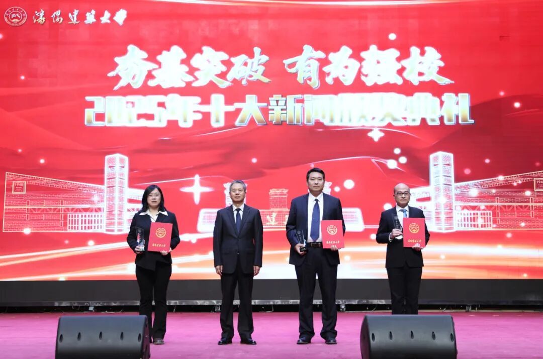 2025年,学校以“一二三四五”工作思路为总牵引,大力弘扬“敢干、苦干、快干、善干”的工作作风,有力推进“四项重点改革”和“四项专项整治”,一项项扎实厚重的成果,铺就了高质量发展的坚实阶梯。典礼上,依次以视频形式公布了十大新闻以及“建大品三学者”“建大英才”获奖名单,校领导、校友代表分别为获奖代表颁奖,勉励大家再接再厉、勇担使命,在新征程上再创佳绩。