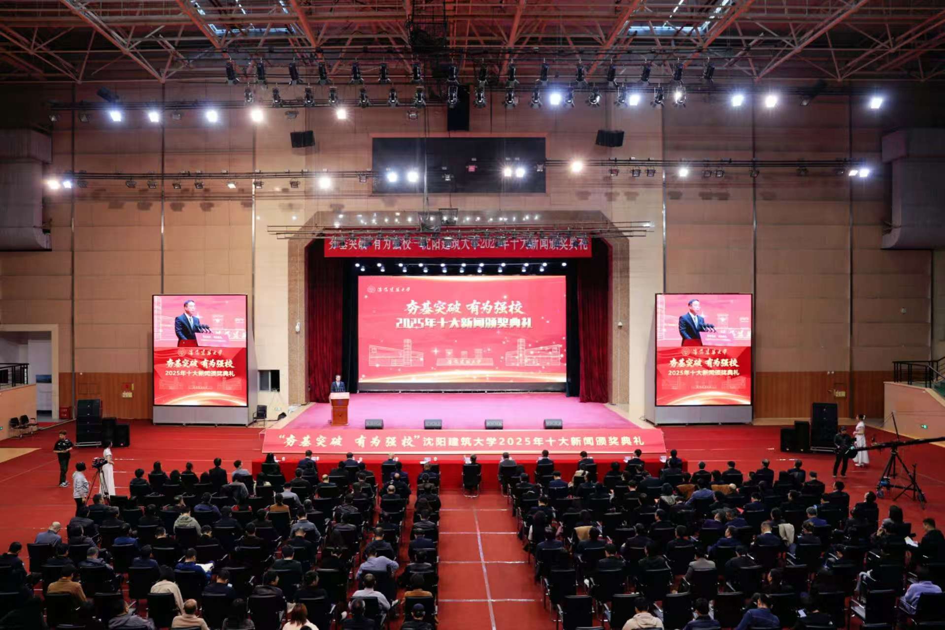 为进一步总结2025年学校发展关键成果,展现全体师生团结奋进的精神风貌,鼓舞师生助力学校高质量发展,4月1日,学校“夯基突破、有为强校”2025年十大新闻颁奖典礼在体育中心文体馆举行。校领导郭长义、赵辉、张佩栋、王凤池、栾方军,党委常委潘瑞、肖阳、林慧,校长助理吕石磊出席典礼。制品80级校友邱则有、计算机80级校友闻冰、自动化80级校友易弘、建机90级校友闫宝新、给排水93级校友董理参加典礼。