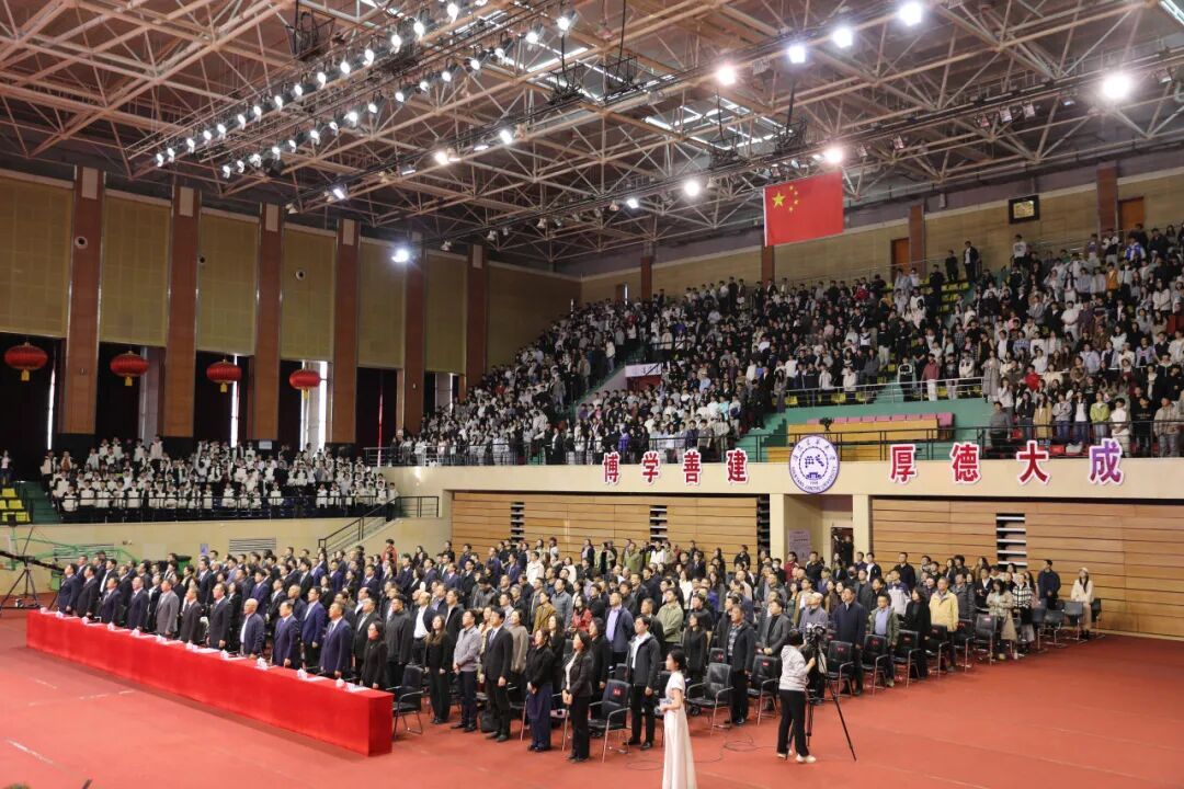 典礼上,师生代表倾情表演了文艺节目《墨舞风华》,以刚柔并济的舞姿与行云流水的笔墨,展现了建大人守正创新、奋发有为的精神气质。在全场齐唱校歌《建造梦想》的歌声中,典礼圆满落幕。