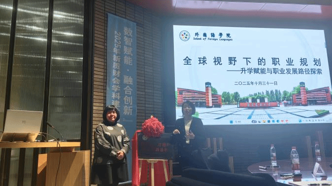 车欣从一场管培生面试谈起,结合自身丰富的留学咨询与升学规划经验,围绕“全球视野下的升学策略”“不同阶段职业发展路径设计”“英语专业学生国际化竞争力提升”三大核心方向展开分享。她通过案例分析,详细解读了当前就业形势、英语专业学生就业优势领域以及如何结合个人兴趣与能力制定科学的升学及职业规划,同时针对学生关心的留学申请流程、升学院校选择、求职面试技巧等问题进行了细致解答,为在场学生提供了针对性的指导。现场互动热烈,同学们不仅加深了对本专业国际化发展的理解,也对多元路径发展、求职技能提升及职场竞争力构建有了更加清晰的认识。