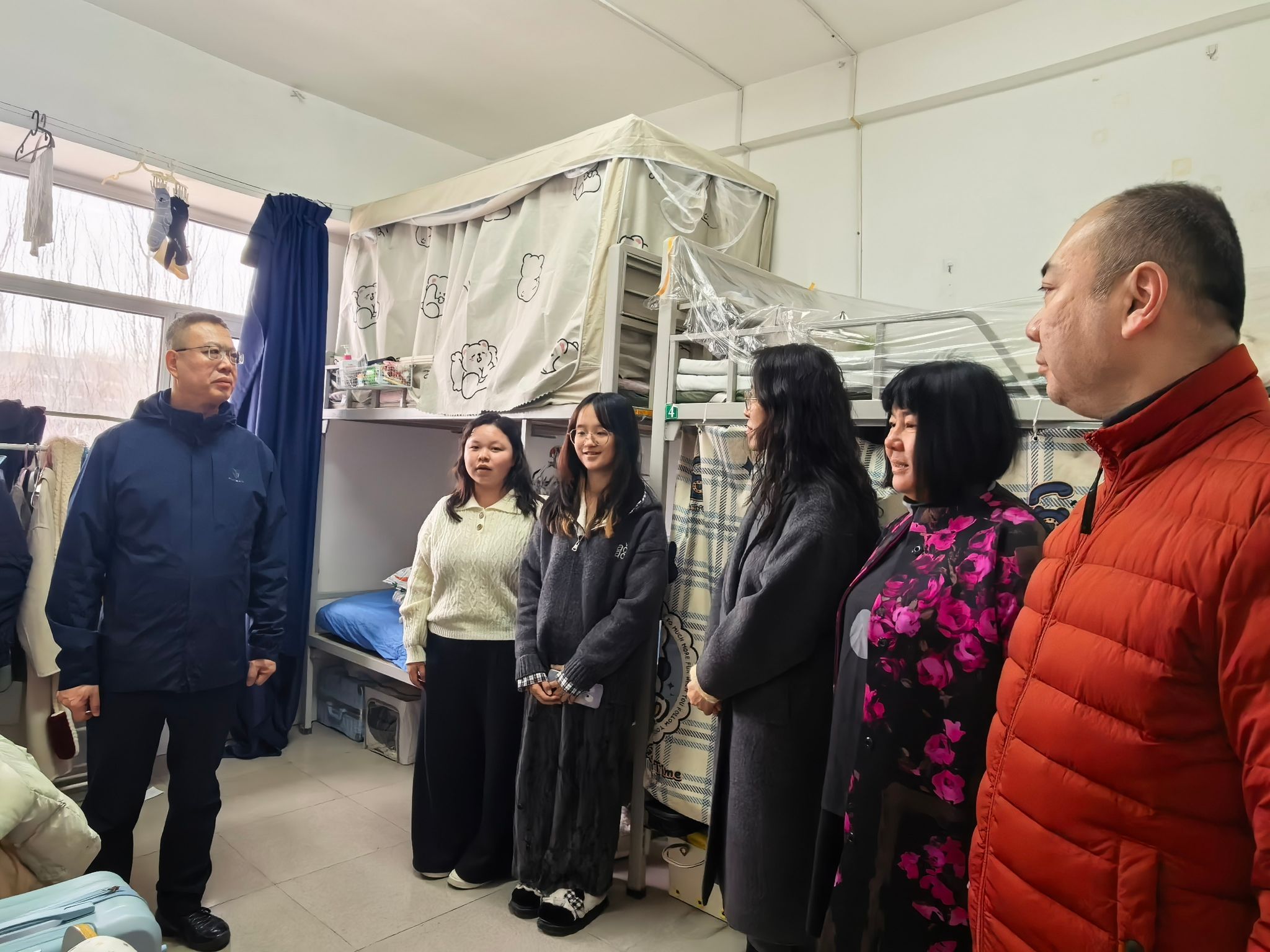 走访过程中,领导班子成员逐间走进学生宿舍,与返校学生面对面亲切交谈,细致询问同学们的假期生活、返校途中情况以及新学期的学习计划与生活需求。针对不同年级学生特点,班子成员精准施策、贴心指导:对低年级学生,鼓励他们快速调整状态,夯实专业基础,积极参与校园实践;对高年级学生,重点关切考研备考、就业规划等核心需求,结合外语专业特色给予针对性建议,勉励同学们明确目标、脚踏实地。